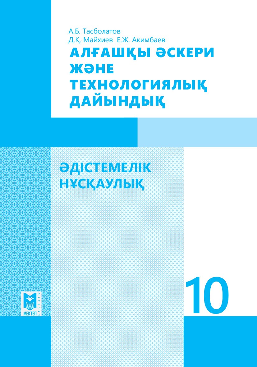 Алғашқы әскери және технологиялық дайындық 10. Әдістемелік нұсқаулық. Жалпы білім беретін мектептің 10-сынып мұғалімдеріне арналған құрал / А.Б.Тасболатов, Д.Қ.Майхиев, Е.Ж.Акимбаев – Алматы: Мектеп, 2025. – 192 б., сур.